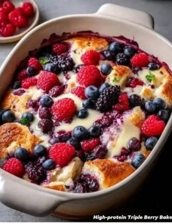 🍓 High-Protein Triple Berry Bake 🧾 Ingredients 1 cup strawberries, chopped 1 cup blueberries 1 cup raspberries 1 cup cottage …