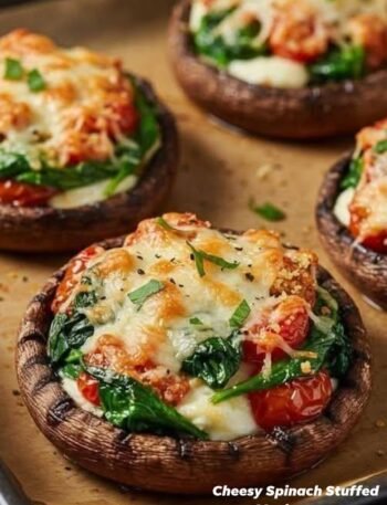 🍄 Cheesy Spinach Stuffed Mushrooms 🌿 Description Juicy mushrooms are filled with a creamy mixture of sautéed spinach, garlic, and …