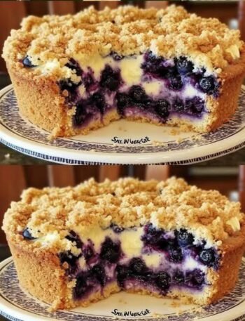 📝 Description This decadent dessert features a soft, cookie-like base, a luscious cream cheese filling bursting with juicy blueberries, and …