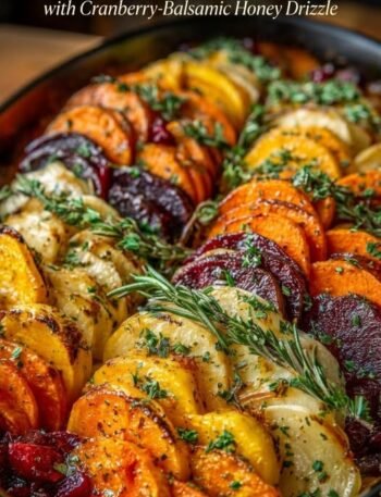🍲 Layered Sweet Potato, Butternut Squash & Carrot Bake with Cranberry–Balsamic Honey Drizzle 🧾 Ingredients For the Bake: 2 medium …