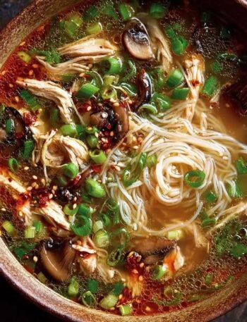 🍜 Garlic Ginger Chicken & Mushroom Noodle Soup (Mediterranean-Inspired Comfort Bowl) This Garlic Ginger Chicken & Mushroom Noodle Soup is …