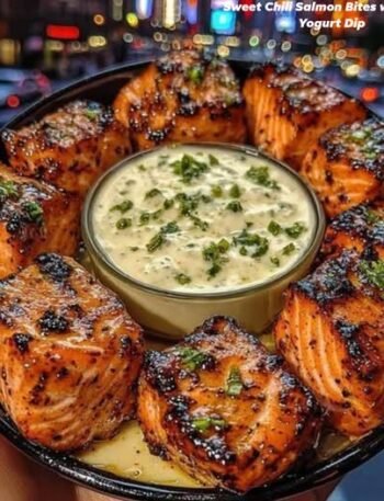 🍣 Sweet Chili Salmon Bites with Lime Yogurt Dip (Mediterranean Twist) These Sweet Chili Salmon Bites are crispy on the …