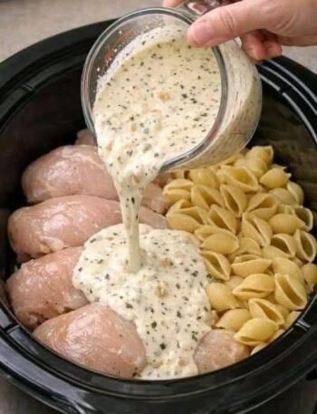 🍗 Creamy Slow Cooker Chicken & Shells (Dump-and-Go Comfort Dinner) Just pour this rich, creamy mixture over raw chicken and …