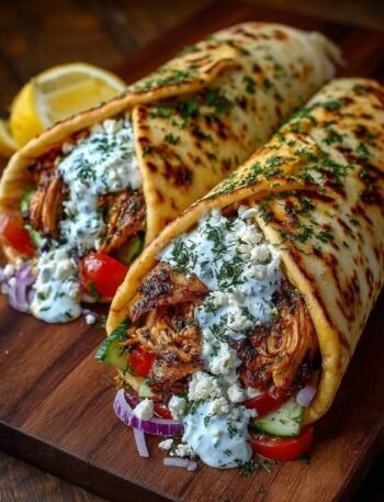 🌯 Greek Chicken Gyro Wraps with Lemon Yogurt Juicy, herb-marinated chicken wrapped in warm pita and topped with a creamy …