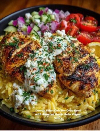Description This Lemon Dijon Chicken Orzo Bowl with Roasted Garlic Feta Yogurt Sauce is a Mediterranean-inspired, high-protein dinner packed with …