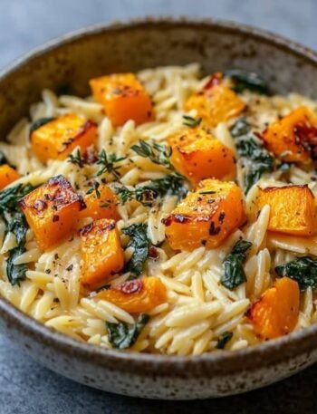🍝 Creamy Orzo with Roasted Butternut Squash & Spinach 🌿 Description This dish combines tender roasted butternut squash with creamy …