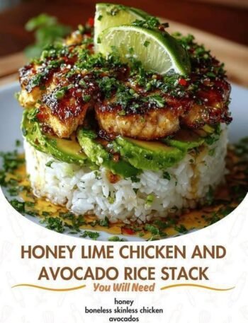 Honey Lime Chicken and Avocado Rice Stack 🍯🍋🥑 A bright, fresh Mediterranean-inspired dish featuring sweet-tangy honey lime chicken layered over …