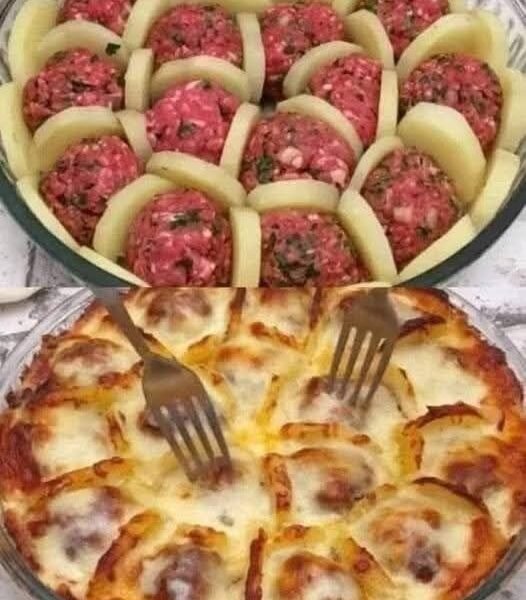 A rustic, oven-baked dish combining tender boiled potatoes, juicy Mediterranean-style meatballs, and melted cheese — layered and baked to golden perfection. Think of it as a mix between a French gratin dauphinois and an Italian meatball bake.