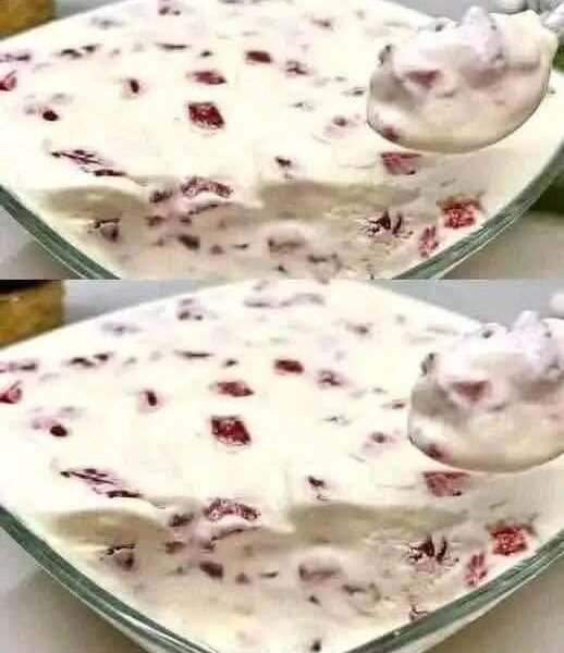 This is a rich, velvety layered dessert made with whipped cream, sweetened condensed milk, and chunks of strawberries folded into a soft, mousse-like base. It’s chilled until set, creating a smooth, scoopable texture—somewhere between pudding, cheesecake filling, and ice cream. Perfect for summer, potlucks, or quick no-oven treats.