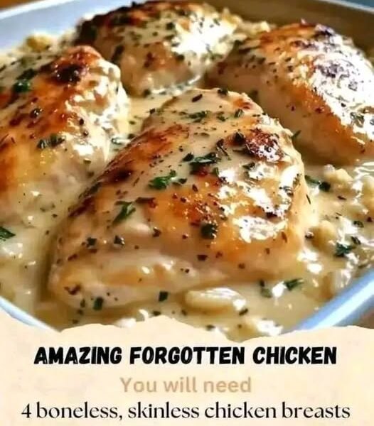 Do not mix — the magic of Forgotten Chicken is letting the oven do the work.