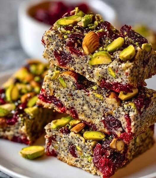 These Anti-Inflammatory Pistachio Cranberry Poppy Seed Bars are a nutrient-dense, naturally sweetened snack designed to support overall wellness while satisfying cravings for something rich, chewy, and indulgent. Inspired by wholesome Mediterranean and functional nutrition principles, these bars combine anti-inflammatory superfoods such as pistachios, almonds, dried cranberries, poppy seeds, honey (or maple syrup), and healthy fats.