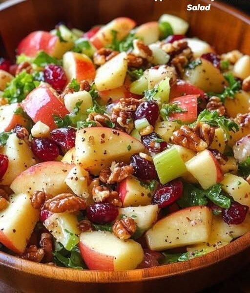 This vibrant salad combines crisp apples, tart cranberries, and crunchy walnuts over fresh greens, tossed in a light honey vinaigrette. It’s refreshing, nutrient-rich, and perfect as a side dish or a light meal.