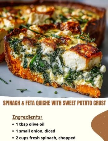 🥧 Spinach & Feta Quiche with Sweet Potato Crust (Mediterranean Style) Serves: 4–6Prep time: 20 minCook time: 40–45 minTotal time: …