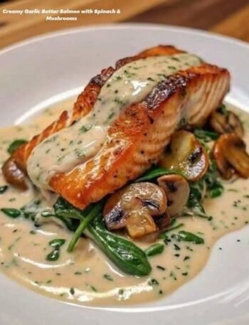 🐟 Creamy Garlic Butter Salmon with Spinach & Mushrooms (Mediterranean Style) This Creamy Garlic Butter Salmon with Spinach & Mushrooms …