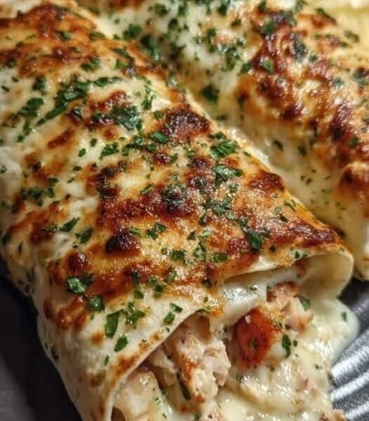 🧄🧀 Baked Cheesy Garlic Chicken Wraps – Mediterranean Style