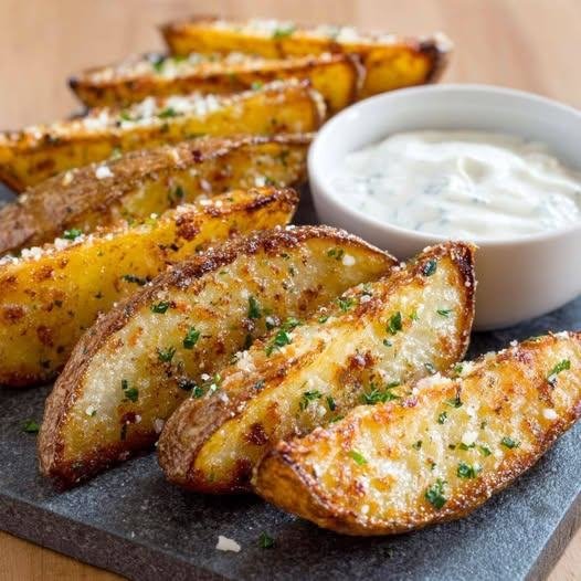 Mediterranean Baked Garlic Parmesan Potato Wedges