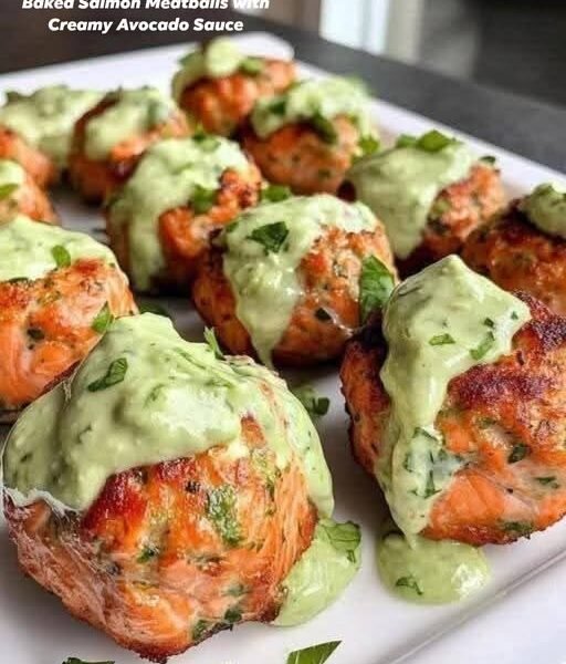 🐟 Baked Salmon Meatballs with Creamy Avocado Sauce