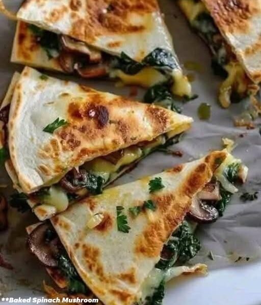 🌿🍄 Baked Spinach & Mushroom Quesadillas