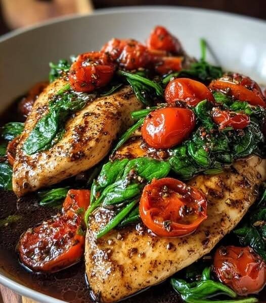 🍗 Balsamic Chicken Breast with Spinach & Tomatoes