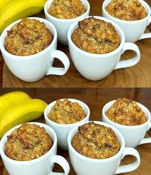 Baked directly in ceramic mugs, they come out moist inside with a lightly crisp oat topping. The bananas provide natural sweetness while oats add texture and long-lasting energy.