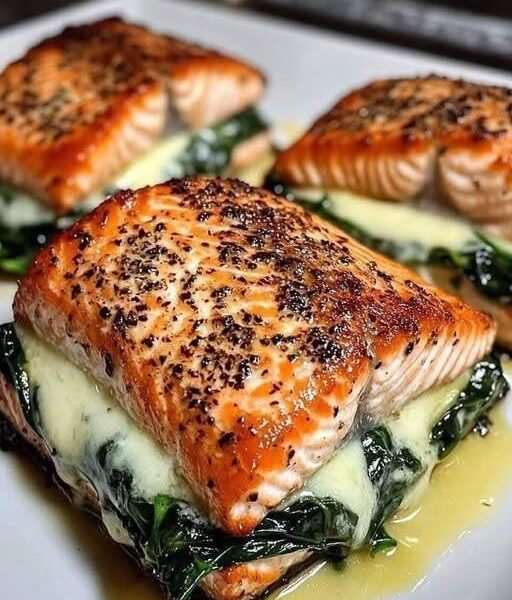 🐟 Blackened Salmon Stuffed with Spinach & Parmesan
