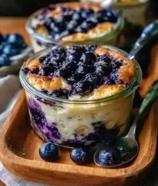 Pour mixture into prepared dish or ramekins. Top with remaining blueberries.