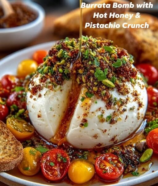 🧀 Burrata Bomb with Hot Honey & Pistachio Crunch