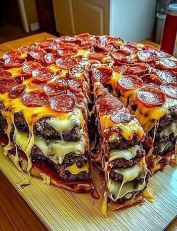 🍔🍕 Giant Double Cheeseburger Pizza (Ultimate Homemade Version) This is a huge, loaded, double-layer cheeseburger-style pizza that tastes like a …