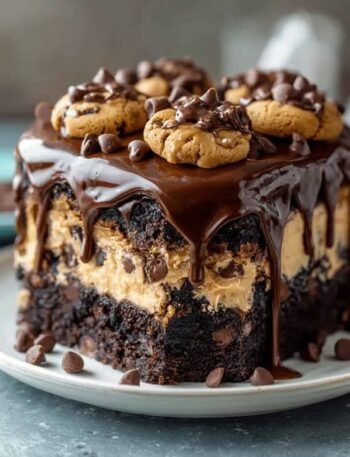 🍫 Cookie Dough Brownie Cake Fudgy brownie + safe-to-eat cookie dough + silky chocolate topping. ⏱ Time Prep: 30 minutes …