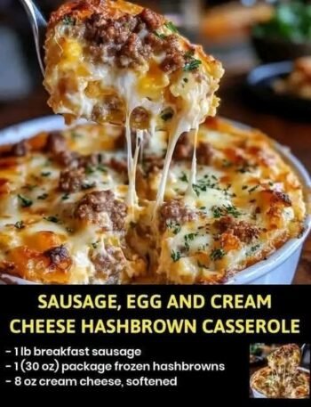 🥔 Sausage, Egg & Cream Cheese Hashbrown Casserole (Mediterranean) ⏱ Prep Time: 15 minutes ⏱ Cook Time: 40–45 minutes 🍽 …