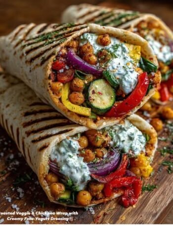 🌯 Roasted Veggie & Chickpea Wrap with Creamy Feta-Yogurt Dressing (Mediterranean Style) A hearty, colorful wrap packed with roasted Mediterranean …