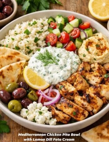 🫒 Mediterranean Chicken Pita Bowl with Lemon Dill Feta Cream This Mediterranean Chicken Pita Bowl is everything we love about …