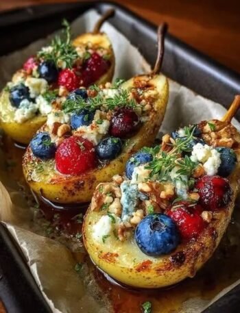 🍐 Mediterranean Baked Pears with Honey, Fresh Berries, Walnuts & Feta Crumble 📖 Description This elegant Mediterranean-inspired dessert combines warm …
