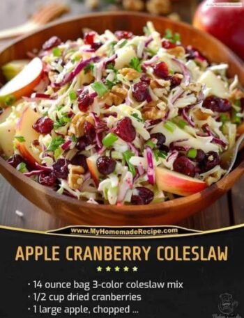 Mediterranean Apple Cranberry Coleslaw 🍎🥗 A crisp, colorful salad packed with fresh cabbage, sweet apples, tart cranberries, crunchy walnuts, and …