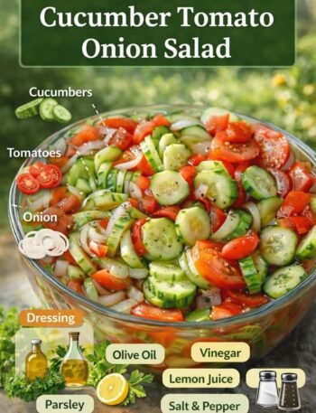 🥒🍅 Cucumber Tomato Onion Salad (Mediterranean Style) ✨ Description Fresh, crisp, and bursting with flavor, this classic Mediterranean salad combines …