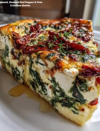 🥬 Spinach, Roasted Red Pepper & Feta Crustless Quiche ✨ Description Light, fluffy, and packed with Mediterranean flavor, this crustless …