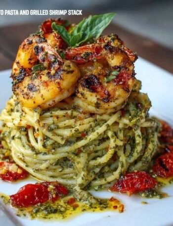 Pesto Pasta with Grilled Shrimp Stack Mediterranean Classic with a Modern Twist Description This dish features al dente pasta tossed …