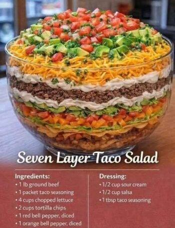 🌮 Seven Layer Taco Salad (Mediterranean-Inspired) 📝 Description This Seven Layer Taco Salad is a crowd-pleasing layered dish that brings …