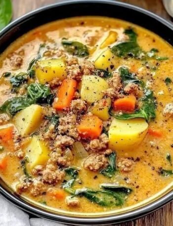 🥣 Mediterranean Italian Sausage Potato Soup with Carrots & Spinach Ingredients 1 lb (450 g) Italian sausage (mild or spicy, …