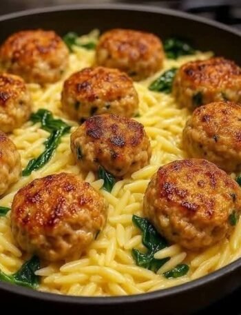 🍋 Lemony Chicken Ricotta Meatballs Over Garlic Spinach Orzo Ingredients 🧆 For the Chicken Ricotta Meatballs 1 lb ground chicken …