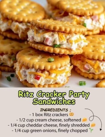 Mediterranean Ritz Cracker Party Sandwiches Crispy, creamy, savory little bites — perfect for parties, snacks, or appetizers. 🟡 INGREDIENTS (makes …