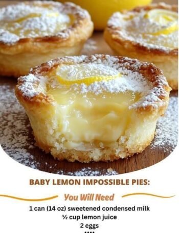 Baby Lemon Impossible Pies (Mediterranean-Inspired) Mini creamy lemon pies with a bright Mediterranean citrus flavor. Ingredients (makes 10–12 mini pies) …