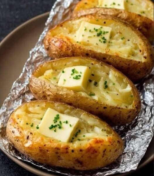 These oven-baked potatoes are golden and crispy on the outside, soft and fluffy on the inside, and loaded with melted butter, cheese, and herbs. Each bite is rich, creamy, and full of comforting flavor—perfect as a side dish or even a satisfying main.
