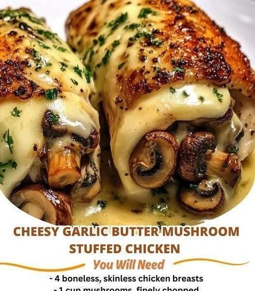 Cheesy Garlic Butter Mushroom Stuffed Chicken