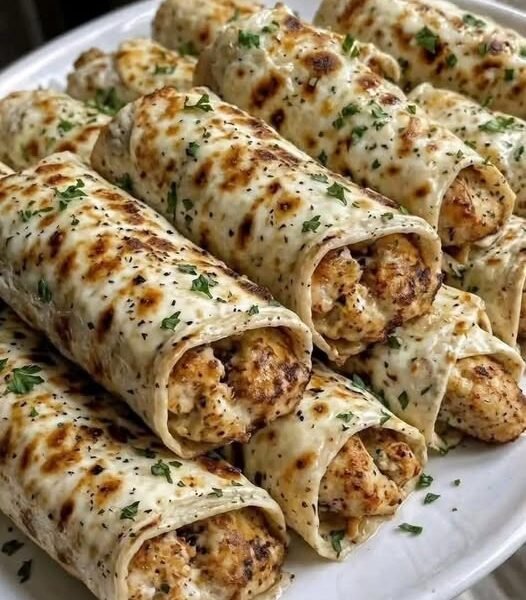 These Cheesy Garlic Chicken Tortilla Roll-Ups are the ultimate comfort food — crispy on the outside, juicy and flavorful on the inside, and smothered in melted cheese that bubbles and browns to perfection. Each roll-up is packed with seasoned chicken, garlic butter, herbs, and a creamy cheese blend, then wrapped tightly in a soft flour tortilla and cooked until golden.