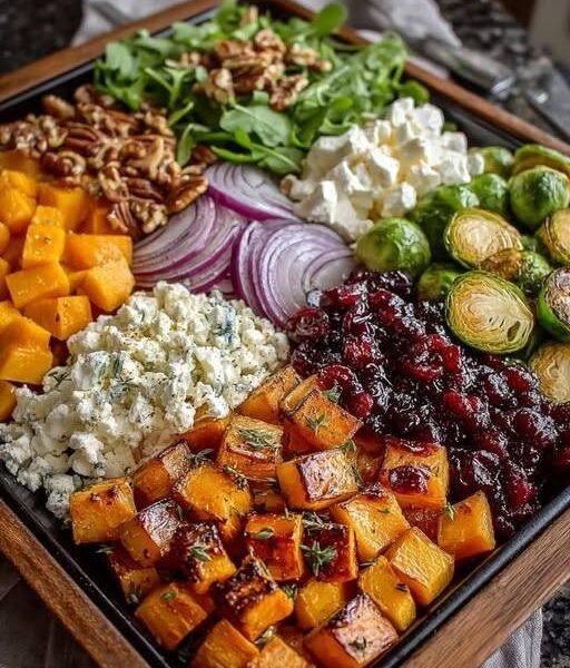 This cranberry-glazed roasted vegetable salad is a vibrant, flavor-packed dish designed to support an anti-inflammatory diet, gut health, and overall wellness. Featuring caramelized butternut squash, sweet potatoes, crispy Brussels sprouts, creamy goat cheese, crunchy walnuts, and a tangy homemade cranberry glaze, this recipe delivers the perfect balance of sweet, savory, and tart.