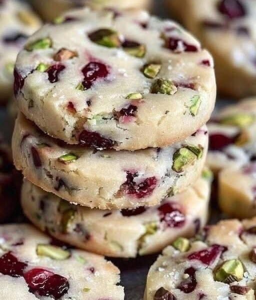 These cranberry pistachio shortbread cookies are the perfect balance of sweet, tart, and nutty flavors. With a melt-in-your-mouth buttery texture, they’re ideal for holiday baking, gift boxes, or even premium dessert menus. The vibrant red cranberries and green pistachios make them visually stunning and festive.