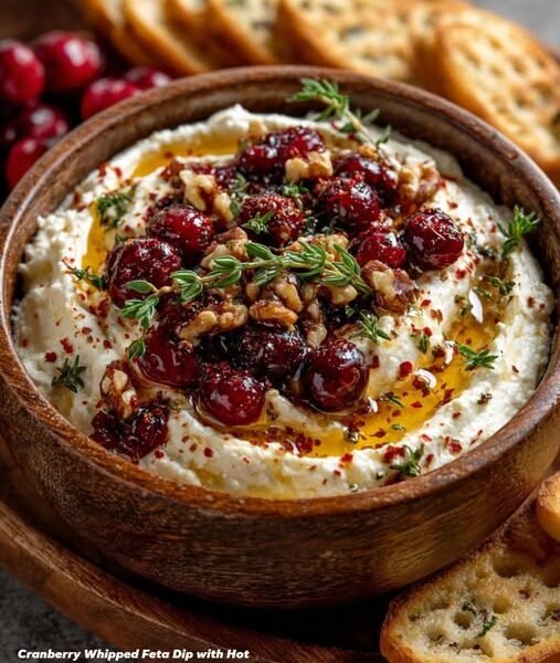 🧀🍯 Cranberry Whipped Feta Dip with Hot Honey Drizzle