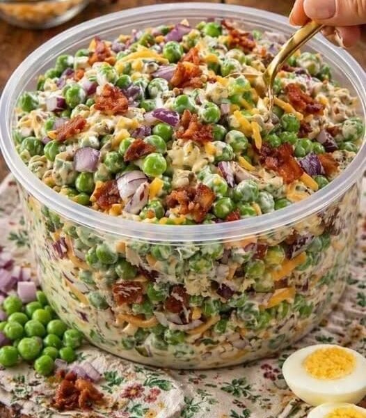 Creamy Bacon Pea Salad is a satisfying mix of crisp, creamy, and savory flavors. Sweet green peas pair beautifully with smoky bacon and rich dressing, while cheddar adds a sharp bite. It’s a perfect side dish for gatherings, picnics, or quick comfort meals.