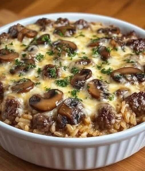 This baked rice casserole combines tender ground beef, savory mushrooms, creamy sauce, and perfectly cooked rice, all baked together into one irresistible dish. The flavors meld beautifully in the oven, creating a creamy, cheesy, and deeply comforting meal that appeals to both kids and adults. Best of all, it’s made with affordable pantry staples, making it ideal for budget-friendly meals and large family dinners.